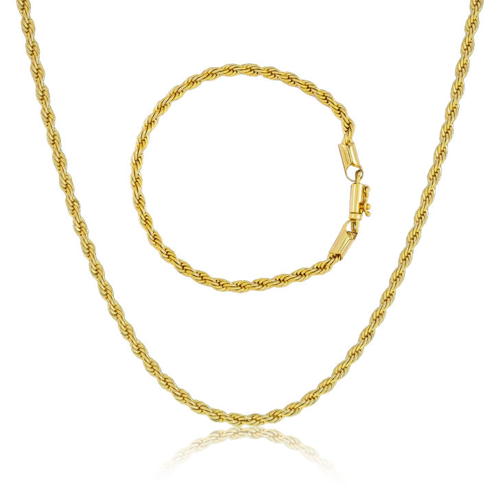 KIT Corrente + Pulseira Baiano 4mm - Banhado a Ouro 18k