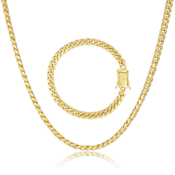 KIT Corrente + Pulseira Cuban 6.5mm - Banhado a Ouro 18K
