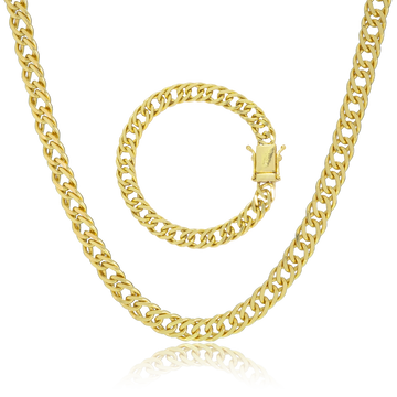 KIT Corrente + Pulseira Cordão Baiano 8mm - Banhado a Ouro 18K