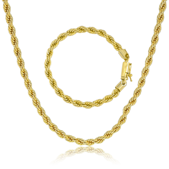KIT Corrente + Pulseira Cordão Baiano 6mm - Banhado a Ouro 18K