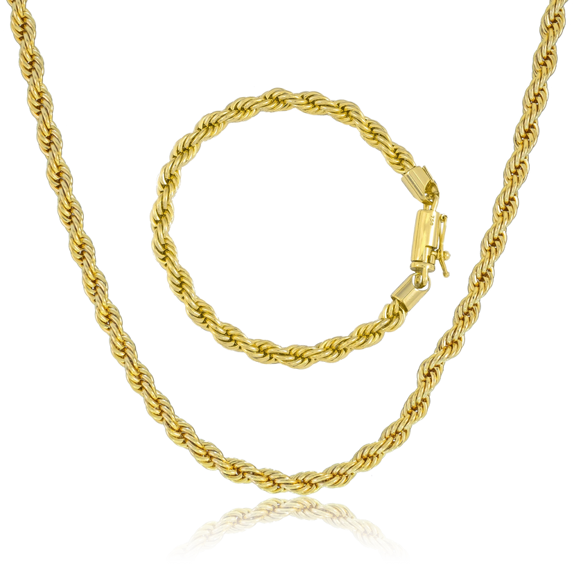 KIT Corrente + Pulseira Baiano 4mm - Banhado a Ouro 18k