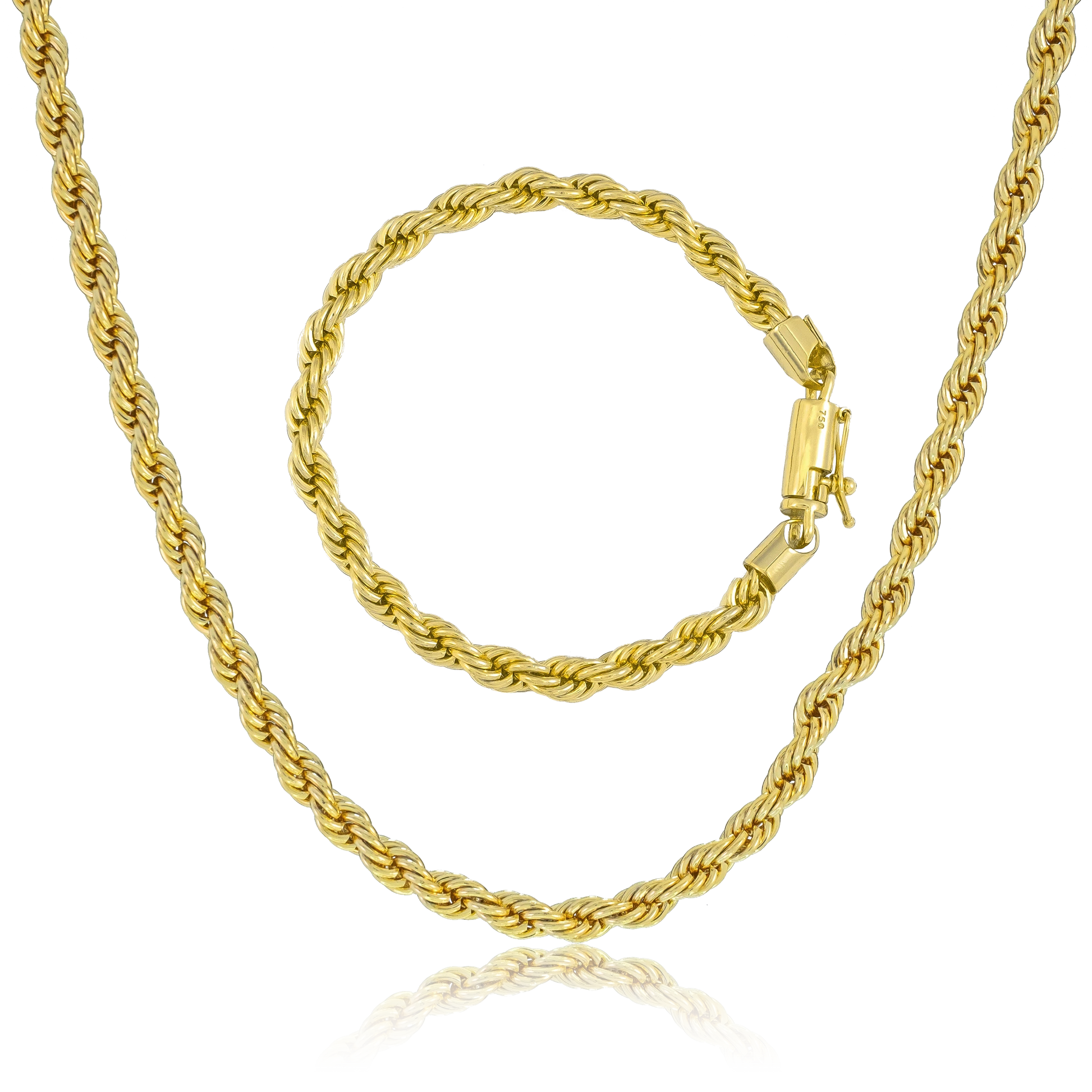 KIT Corrente + Pulseira Cordão Baiano 6mm - Banhado a Ouro 18K
