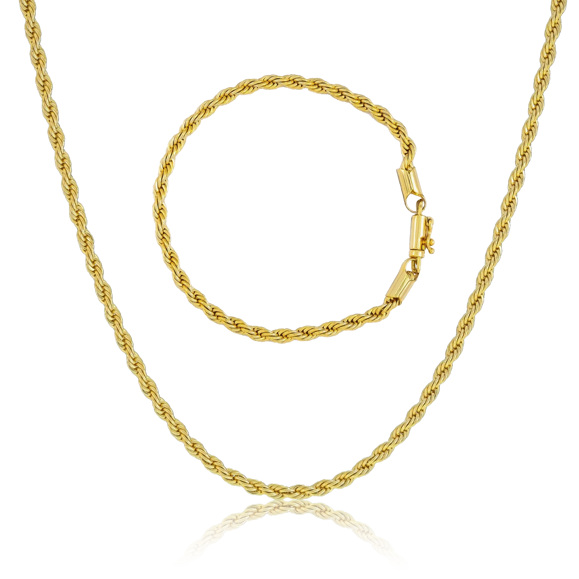KIT Corrente + Pulseira Baiano 4mm - Banhado a Ouro 18k