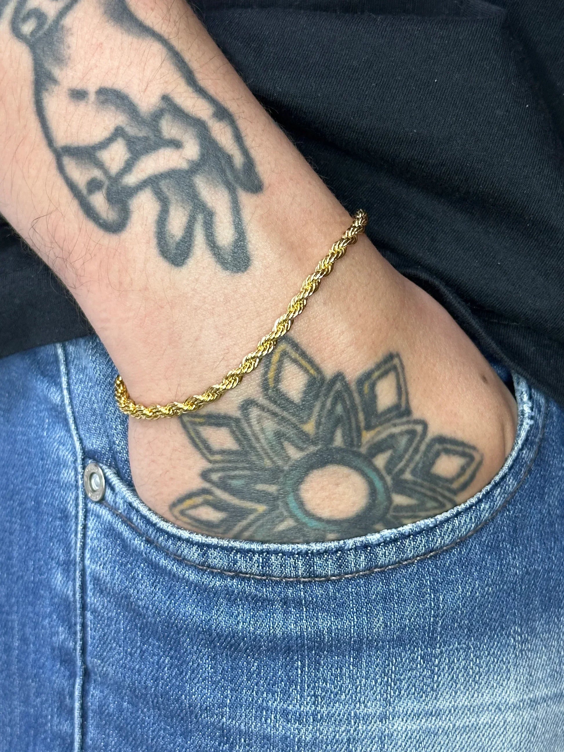 Nosso KIT Corrente + Pulseira Baiano 4mm não é apenas mais um conjunto - é qualidade premium pelo preço que cabe no seu bolso. Banho 18k de alta qualidade com 1 ano de garantia completa em cada peça.