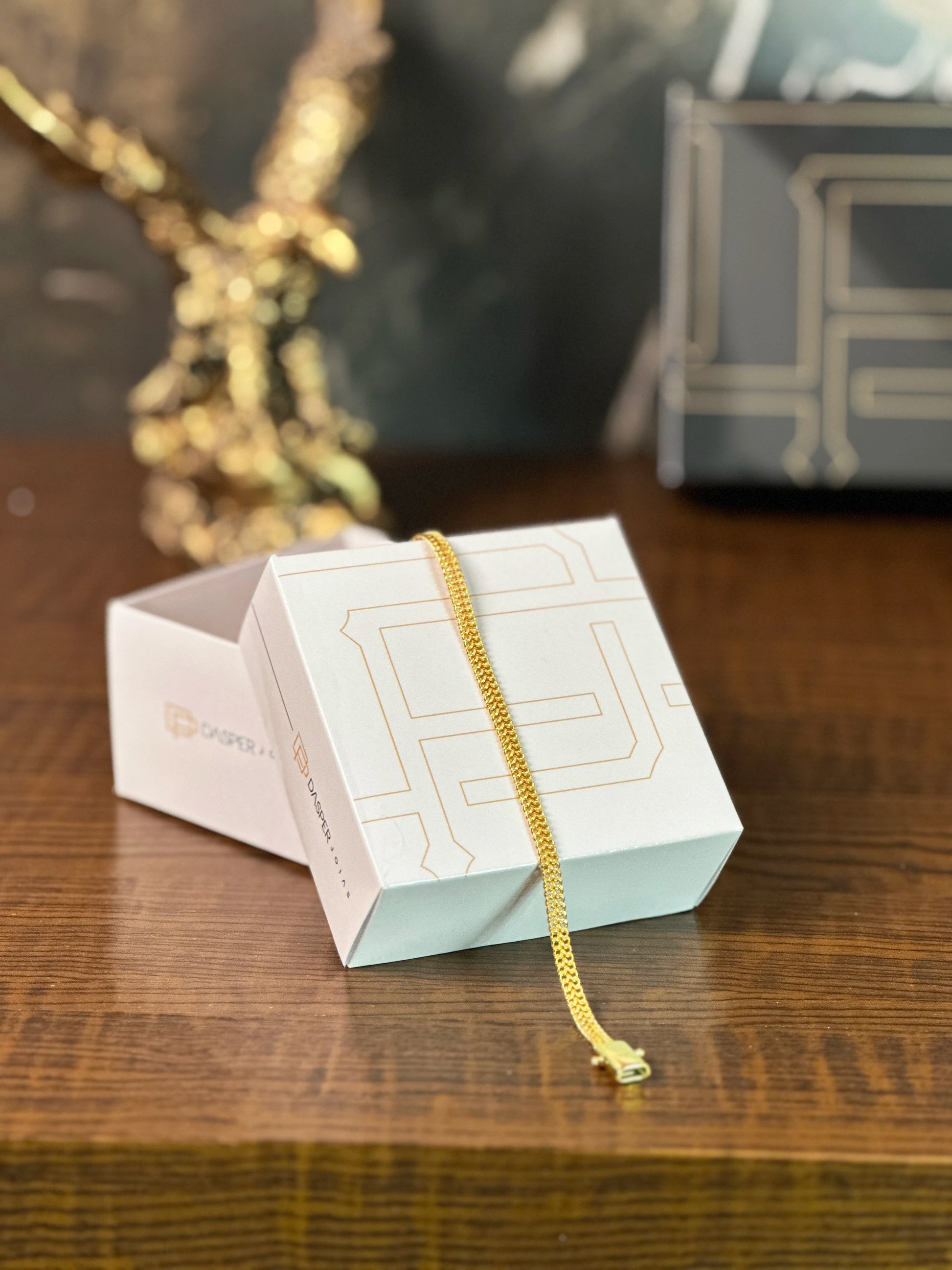 Nossa Pulseira Lacraia (4mm) não é apenas mais um acessório - é qualidade premium pelo preço que cabe no seu bolso. Banho 18k de alta qualidade com 1 ano de garantia completa.