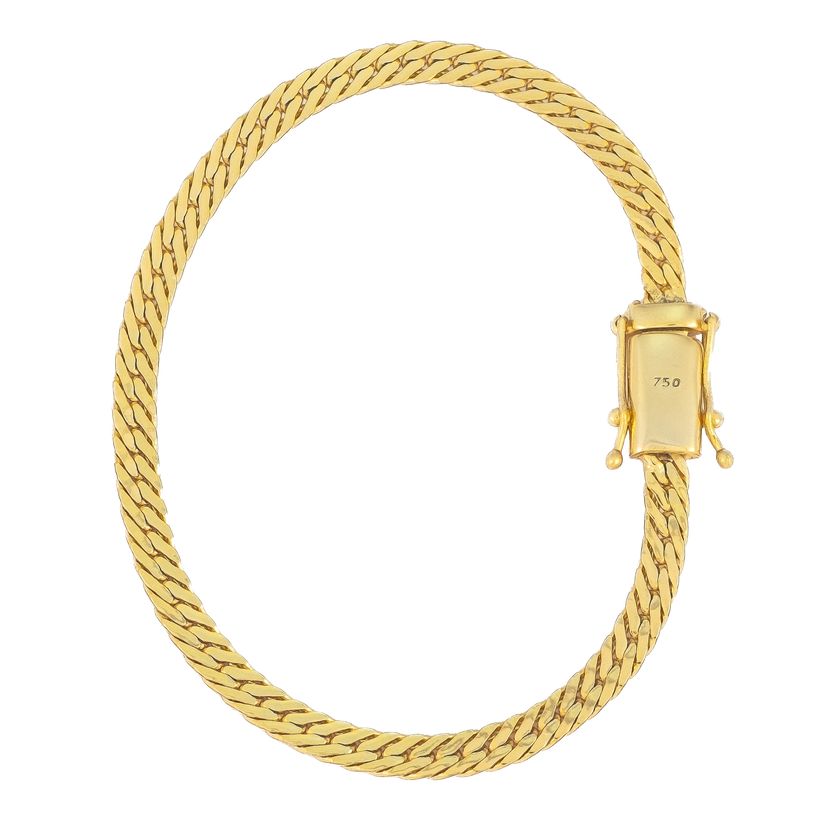 A Pulseira Grumet Flat (4mm) Banhada a Ouro 18K é a sofisticação discreta no seu pulso. Com design achatado que reflete luz de forma única, ela é perfeita para homens que preferem elegância refinada e presença sutil mas marcante.