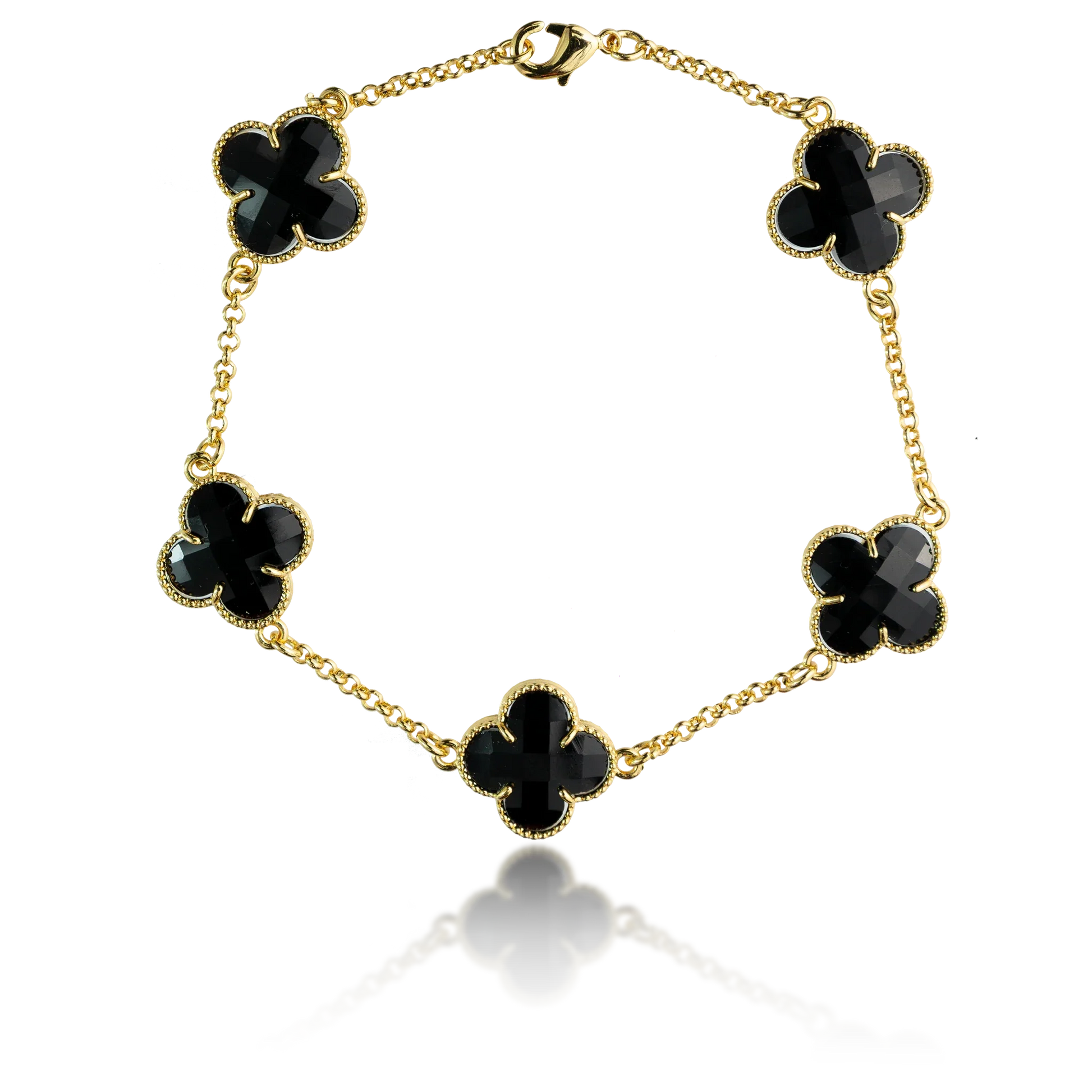 Pulseira Trevo Preto P - Banhado a Ouro 18K