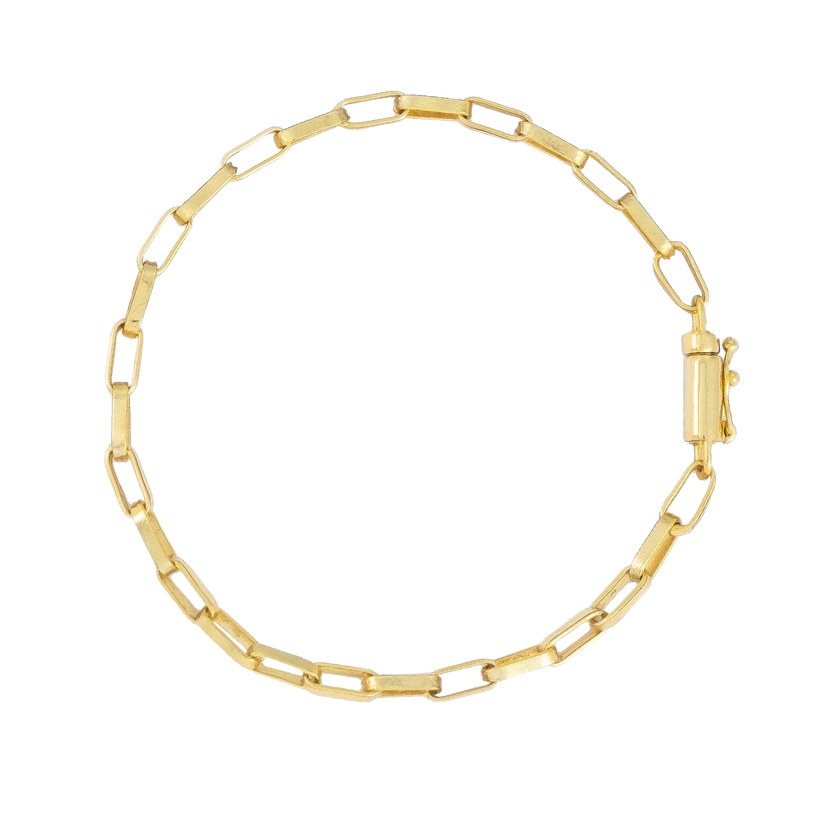 Nossa Pulseira Tijolinho Alongado (3mm) não é apenas mais um acessório - é qualidade premium pelo preço que cabe no seu bolso. Banho 18k de alta qualidade com 1 ano de garantia completa.